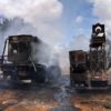 Caminhões com equipamentos de perfuração de poços artesianos foram praticamente destruídos por incêndio, em Livramento de Nossa Senhora.