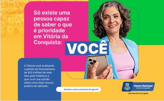 Durante a sessão ordinária desta quarta-feira (03), o presidente da Câmara Municipal de Vitória da Conquista, vereador Ivan Cordeiro, anunciou oficialmente a abertura de uma Consulta Pública que permitirá aos cidadãos opinarem sobre o destino dos recursos do Finisa 4, caso o empréstimo de R$ 400 milhões seja aprovado pelo Legislativo.