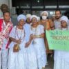 Povo de santo protesta em frente a Disep de Vitória da Conquista, após terreiro ser invadido