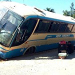 Ónibus da Novo Horizonte quebra barra da direção e passageiros ficam indignados com falta de segurança. O fato aconteceu no Município de Tanque Novo