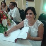 casal Jacqueline Ferraz e Itamar Figueiredo do 'site' 102Conquista recepcionam amigos e clientes em seu stand na Exposição Conquista 2015