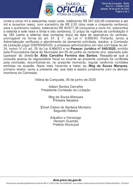 O prefeito Herzem Gusmão (MDB) escolheu esse final de semana para divulgar em Edição Extra do Diário Oficial do Município de Vitória da Conquista a Ata de Dispensa de Licitação Nº DL 017/020 em favor da Viação Rosa Limitada.