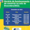 A Câmara de Dirigentes Lojistas informa horário de funcionamento do comercio em Vitória da Conquista. Mês de Dezembro. 2022.
